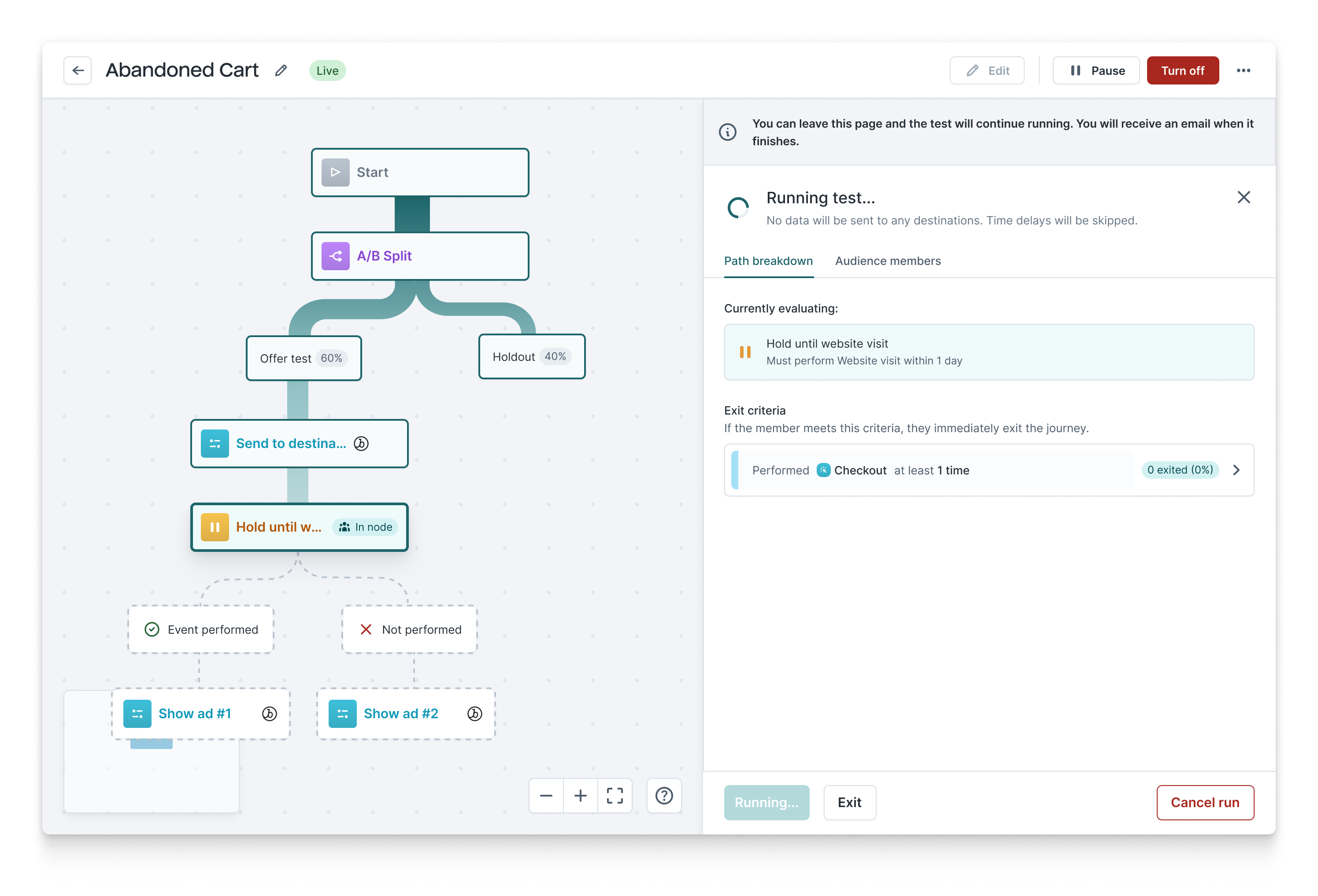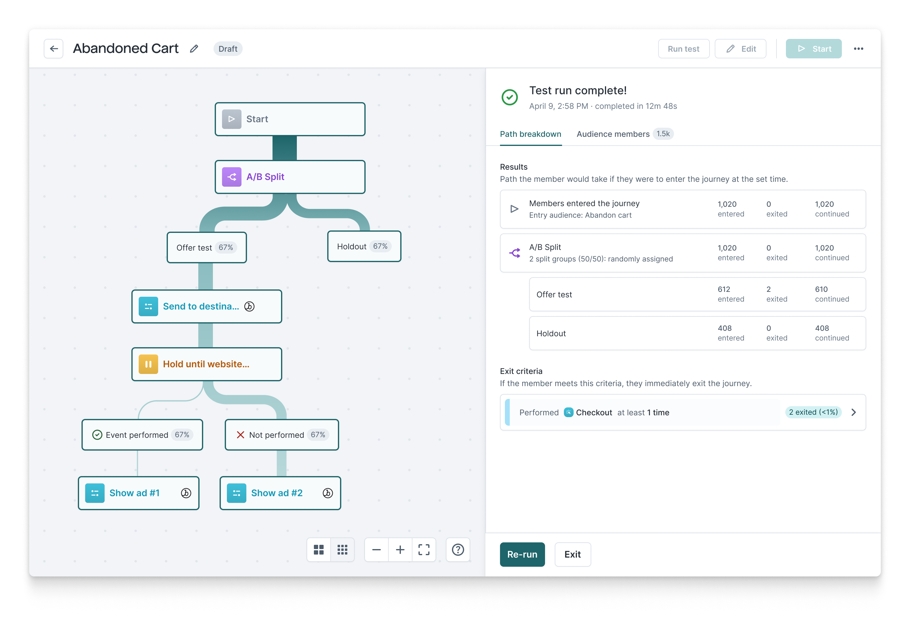 We introduced a native simulation feature that allows users to pick a test user or entire audience and simulate a journey run in a matter of minutes, not weeks.